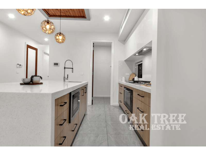 Gourmet Kitchen: Equipped with 80mm stone bench tops and a convenient walk-in pantry, the kitchen is functional and sleek, perfect for cooking and entertaining.